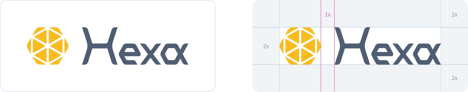 Hexa 的標誌由「字標(word mark)」以及「蜂巢狀的圖形標誌(graphics mark)」構成。